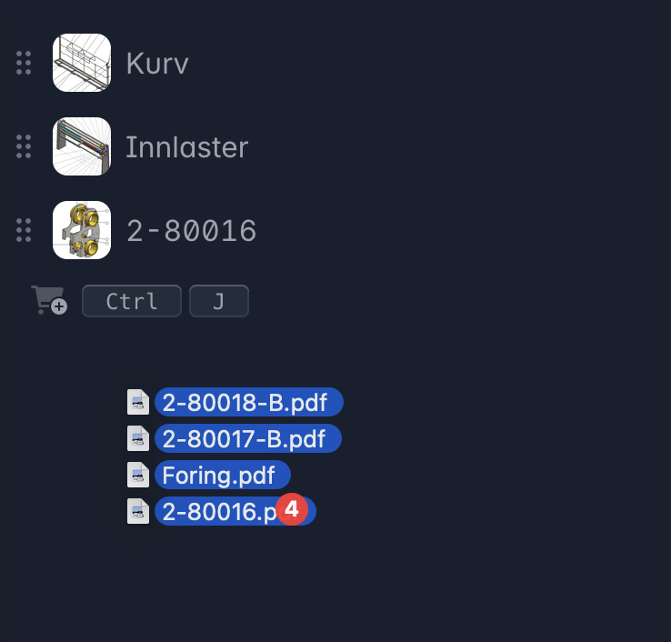 Tegningsnummer (også kalt "artikkel nummer") er som regel det samme som filnavnet. Derfor bruker vi dette som standard, og lar deg endre det om du ønsker.